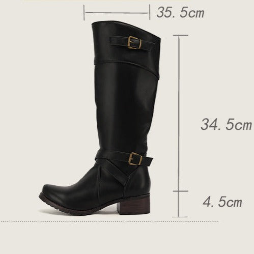 These under the knee motorcycle boots are a fashion must-have this winter! The low heels, buckles, and sleek design, all packed into one stylish boot.