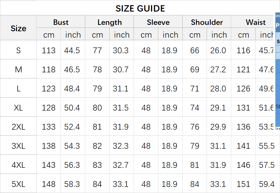 Size: S, M, L, XL, 2XL, 3XL, 4XL, 5XL