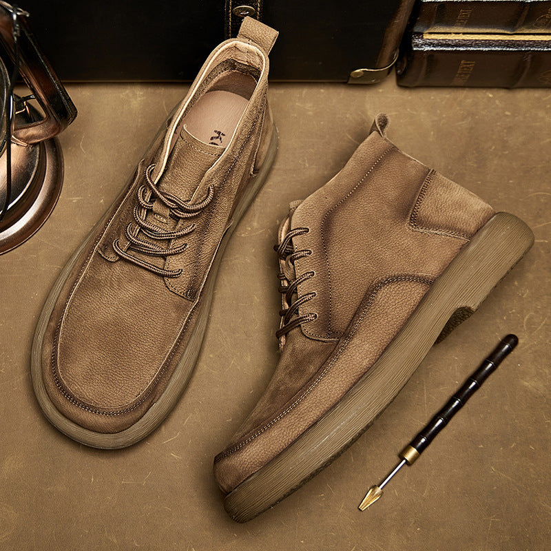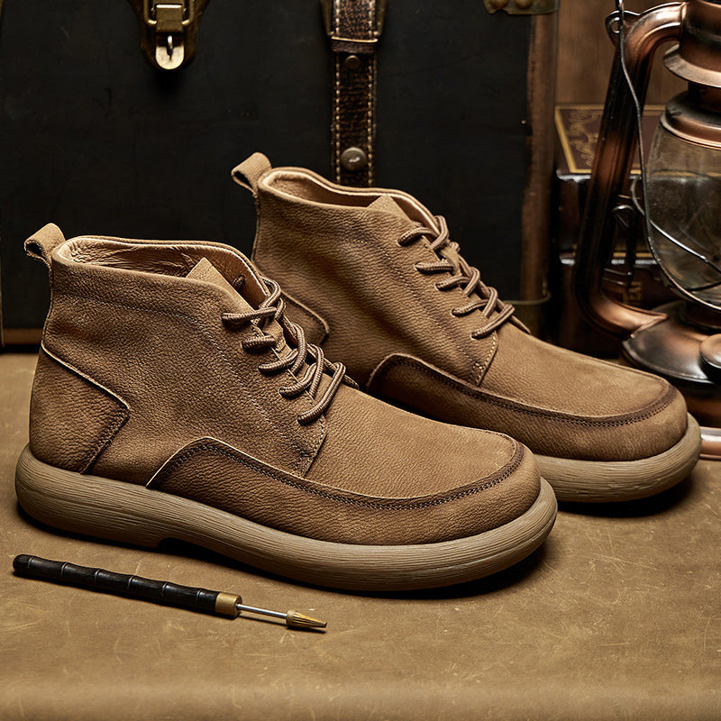 Shoes Type: BootsUpper Material: LeatherClosure Type: Lace upStyle: Daily, casualHeel Type: Flat heelSeason: Spring/summer/fallColor: Khaki, Brown, Black