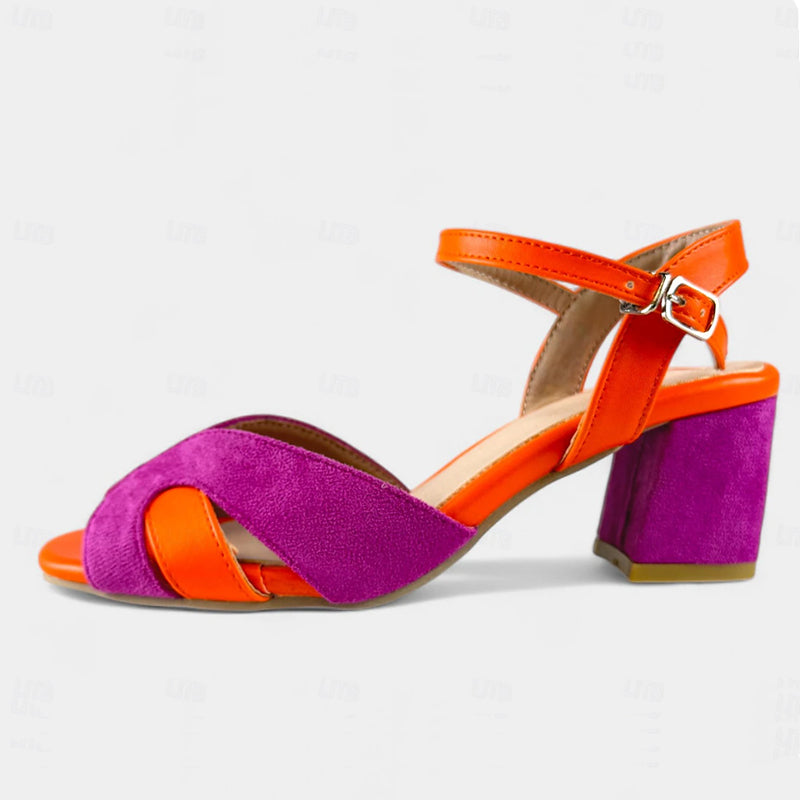 Item type: SandalsGender: WomenToe Shape: Peep toeHeel Height: 2.36" (6cm)Upper Material: Faux suede, faux leatherClosure Type: BuckleSeason: SummerOccasion: Daily, CasualColor: Fuchsia