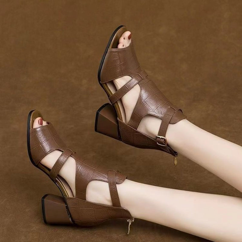 Item type: SandalsGender: WomenToe Shape: Peep toeHeel Height: 1.97" (5cm)Upper Material: Premium PUClosure Type: BuckleSeason: SummerOccasion: Daily, CasualColor: Black, Brown, Beige