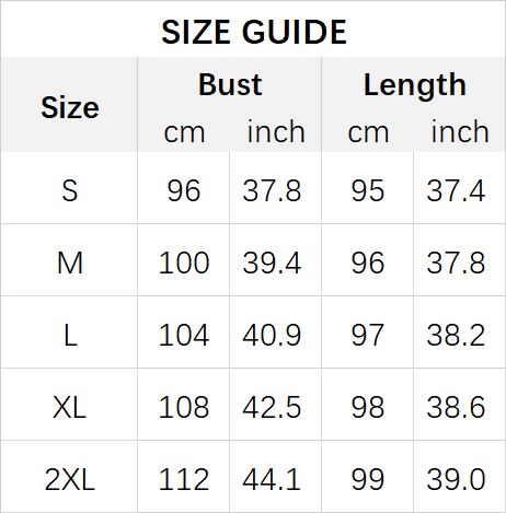 Size: S, M, L, XL, 2XL