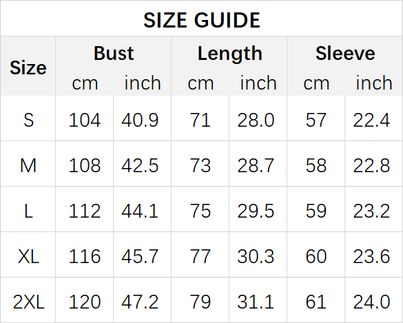 Size: S, M, L, XL, 2XL