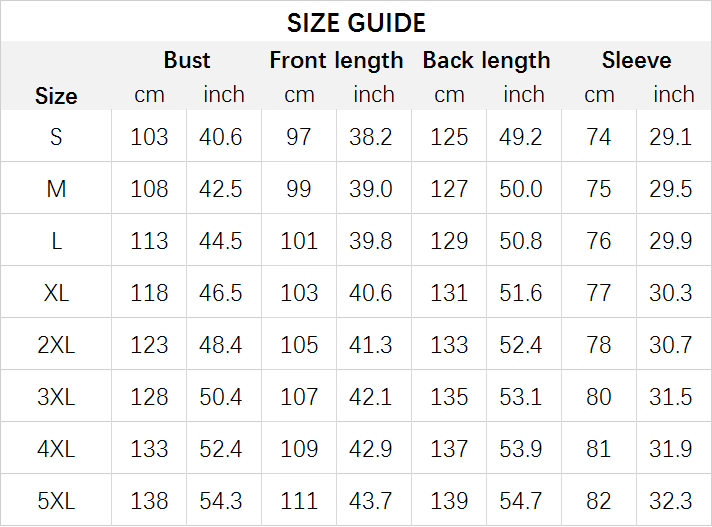 Size: S, M, L, XL, 2XL, 3XL, 4XL, 5XL