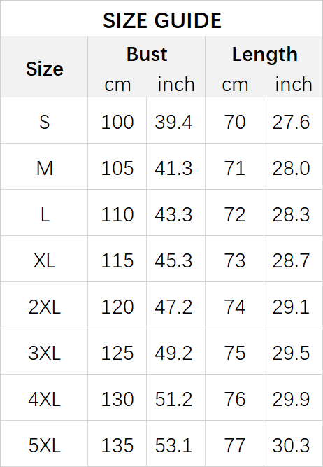 Size: S, M, L, XL, 2XL, 3XL, 4XL, 5XL