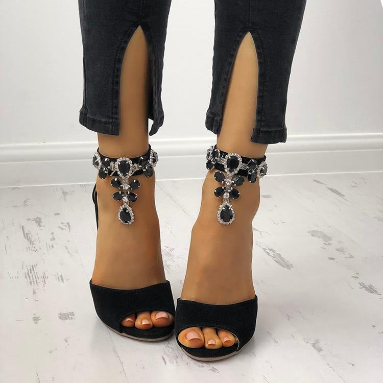 Item type: HeelsGender: WomenToe Shape: Peep toeHeel Height: 4.5 inches (11.5cm)Upper Material: Faux suedeClosure Type: ZipperColor: BlackSeason: SummerOccasion: Casual/Daily/Party