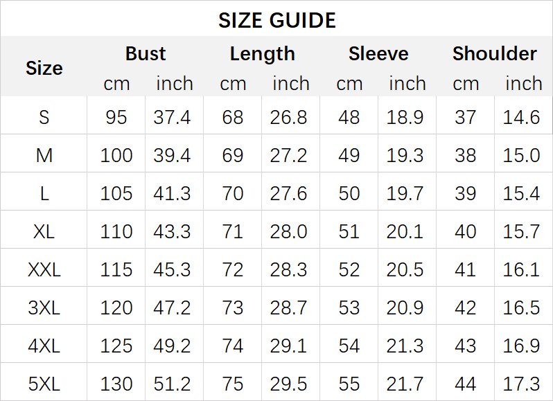 Size: S, M, L, XL, 2XL, 3XL, 4XL, 5XL