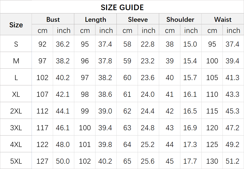 Size: S, M, L, XL, 2XL, 3XL, 4XL, 5XL