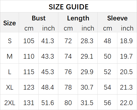 Size: S, M, L, XL, 2XL
