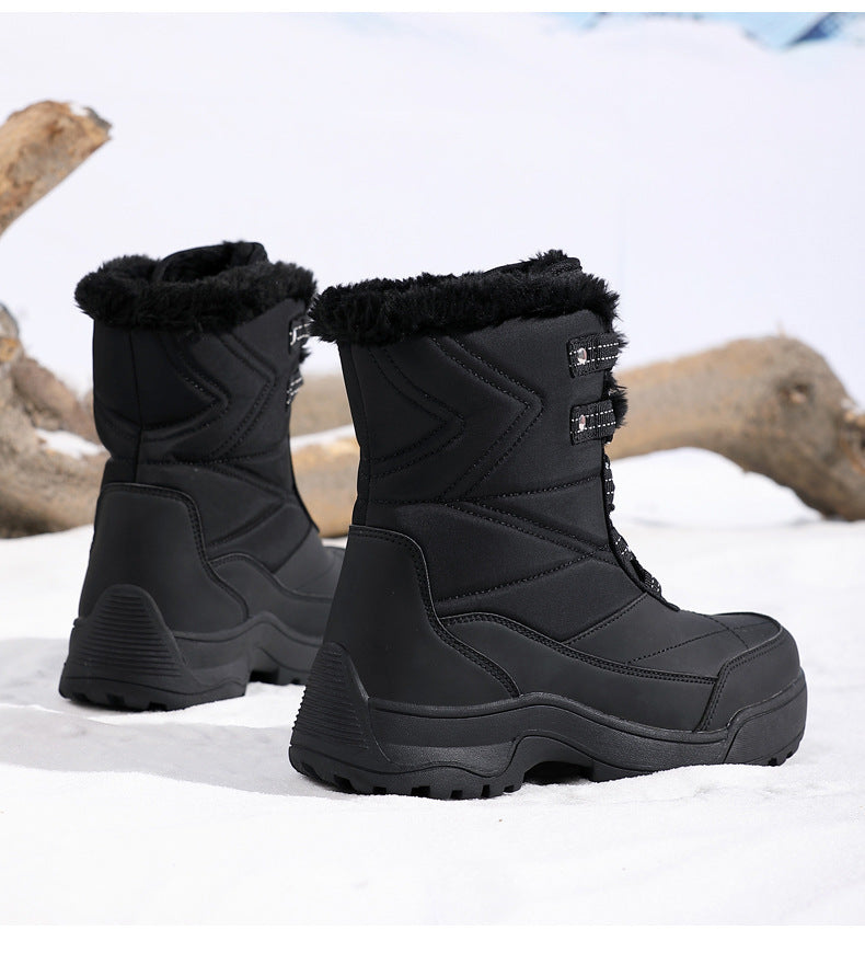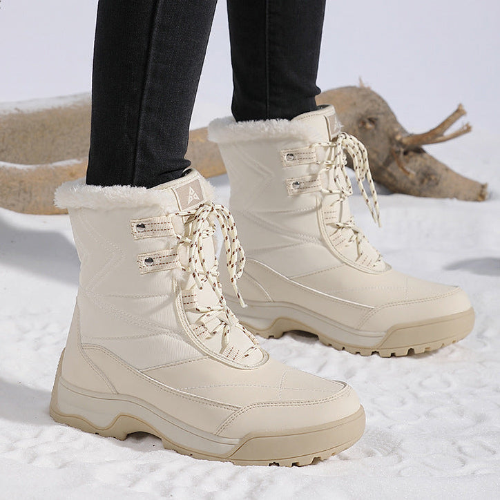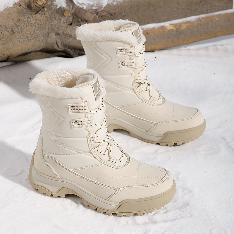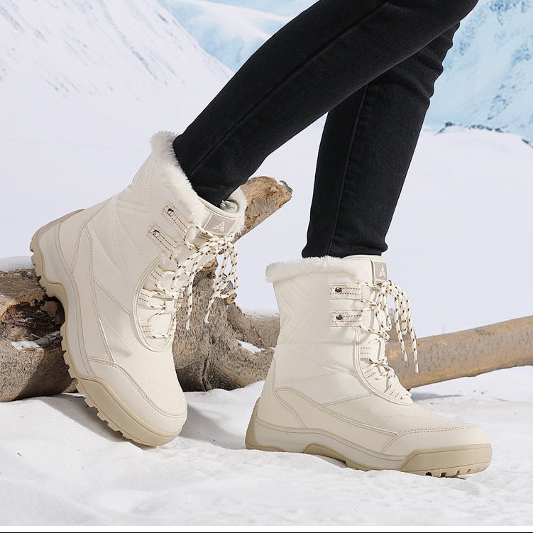 Item type: BootsBoot Type: Furry warm bootsGender: WomenToe Shape: Round toeUpper Material: Premium PULining Material: Thick warm plushClosure Type: Lace-upSeason: winterOccasion: DailyColor: Black, beige
